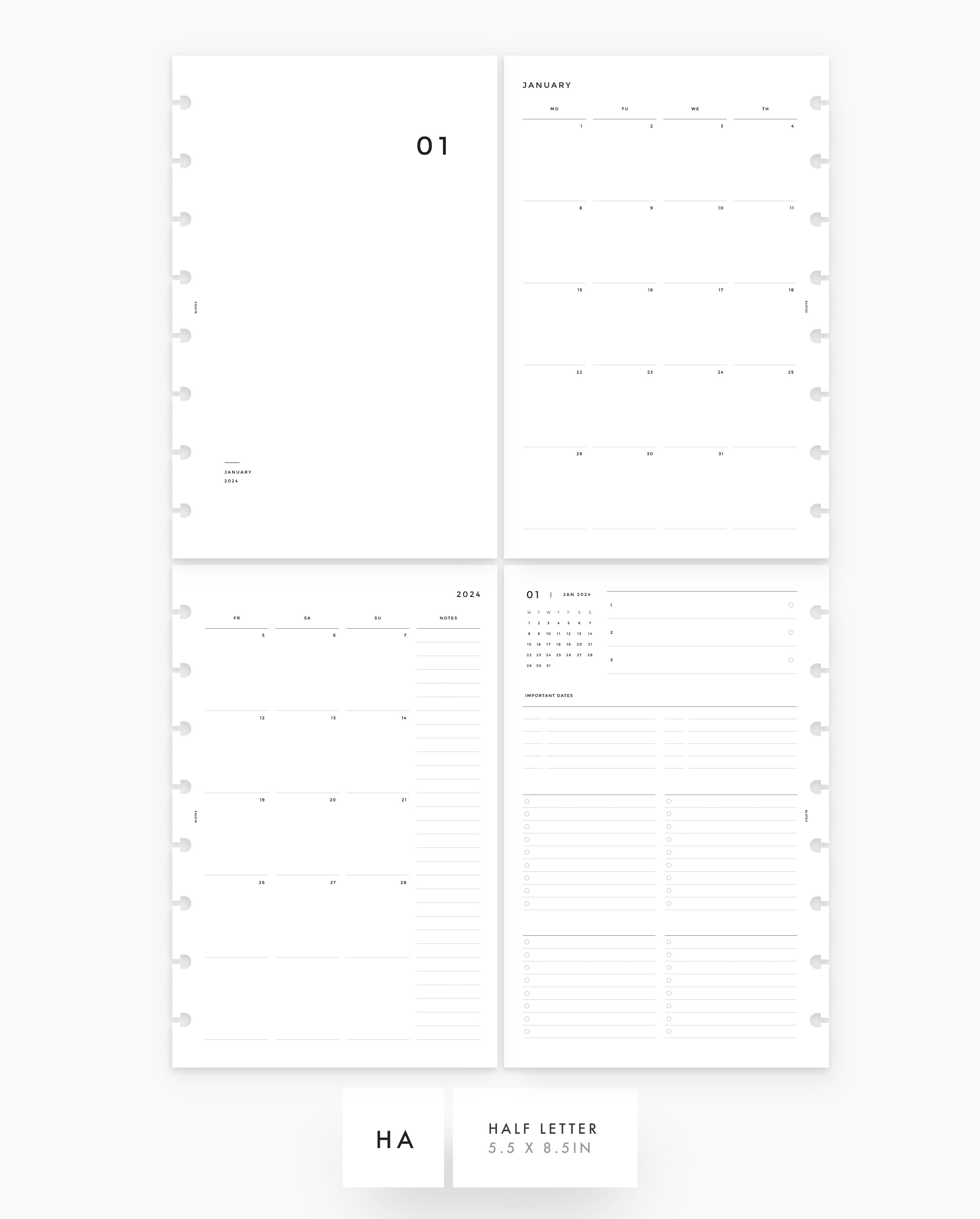 Source : designbundles.net2024 Calendar Monthly Planner Monday and Sunday Start 8 PDF Files